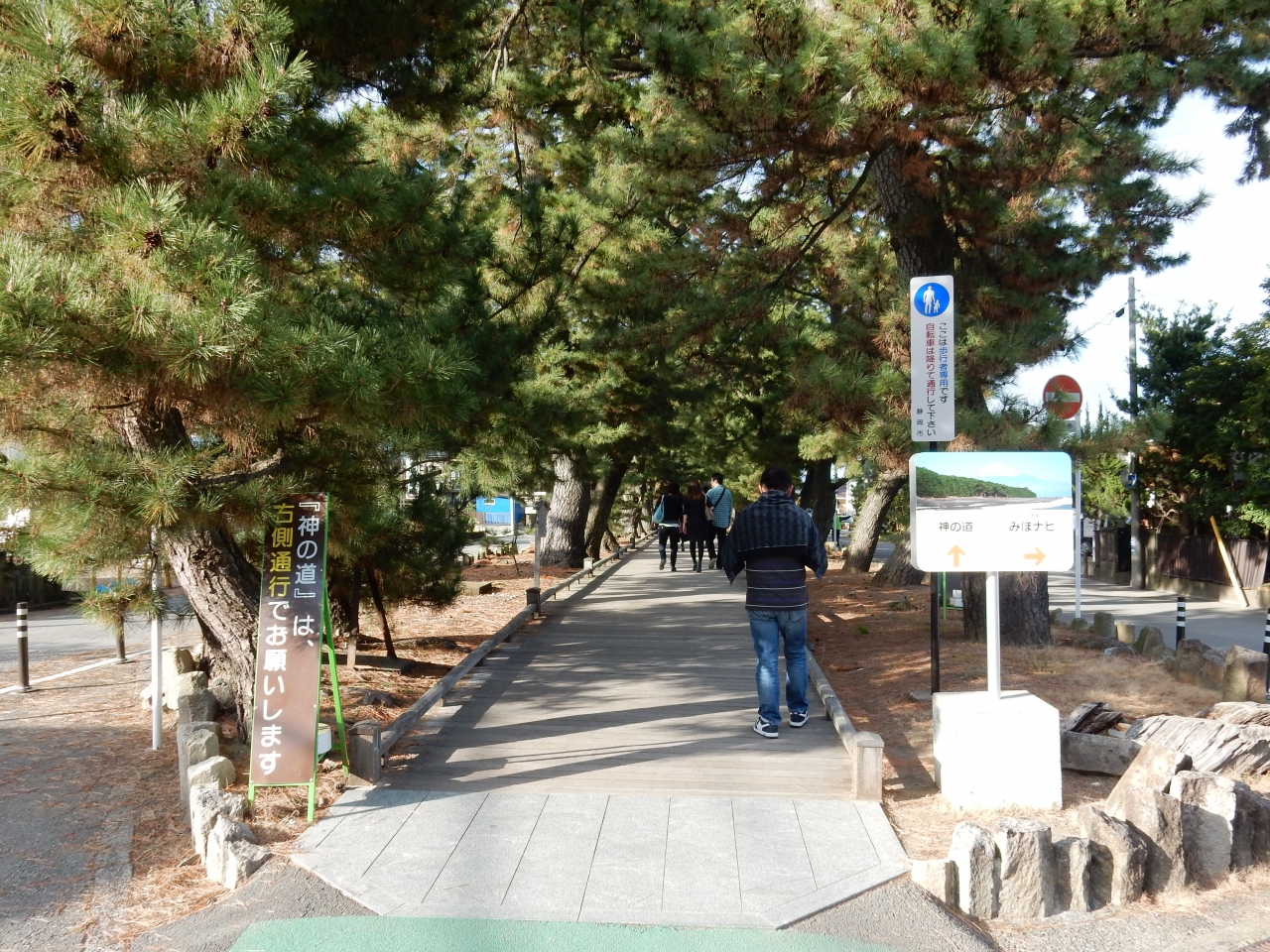 三保神社側に駐車場があまりなく、三保松原の前に停めることになるので、結果的に神の道をフルに歩こうと思うと1往復1kmになります。