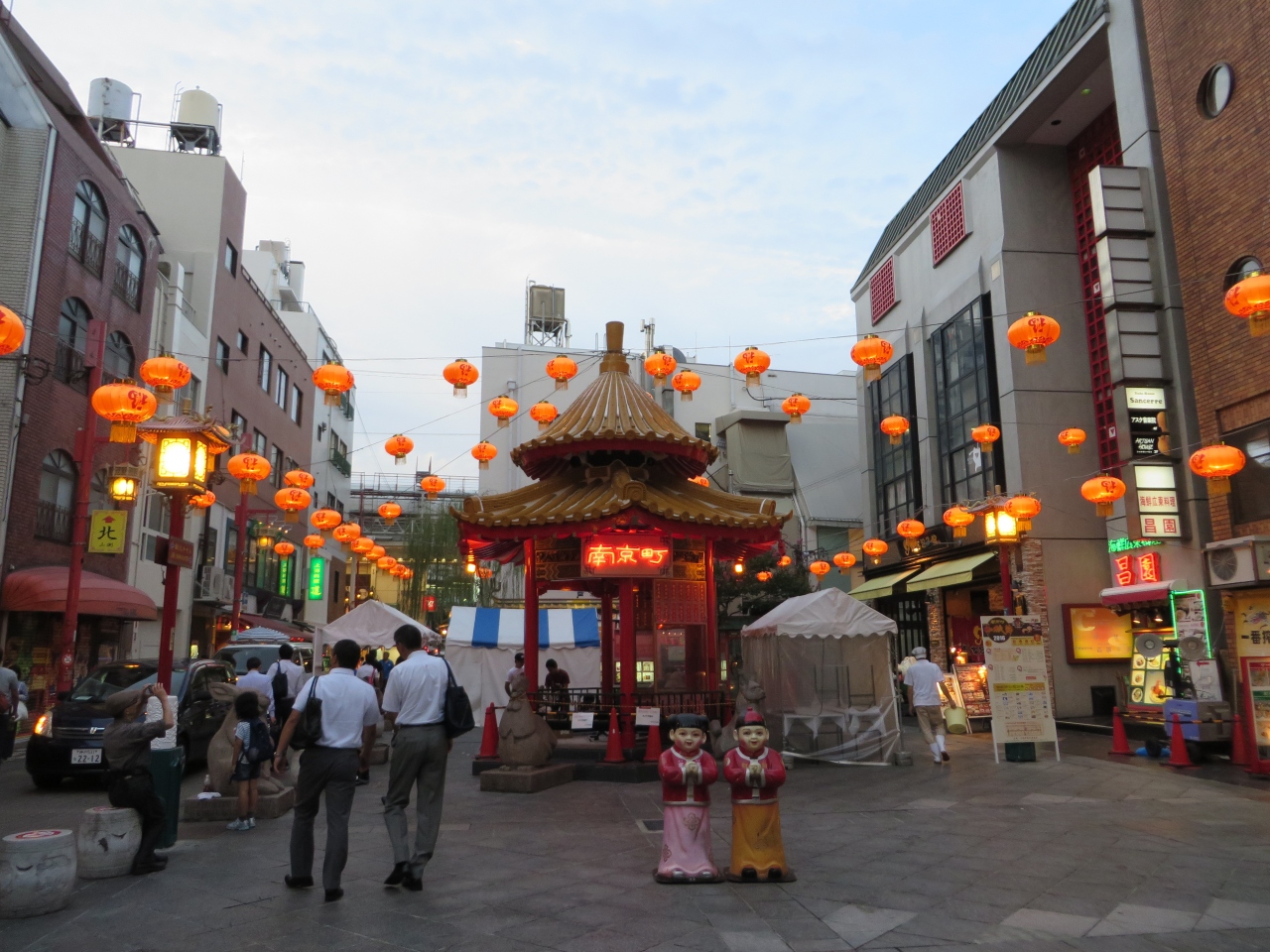 南京町の中華街の通りで、ちょうど真中にあるのがこの広場です。広場にある建物(あずまや)は、南京町のシンボルのような存在で、周囲は大勢の人があふれていました。通りを歩きながら買ったもの、歩きながらではなく、この広場でゆっくり食べている人が大勢いました。