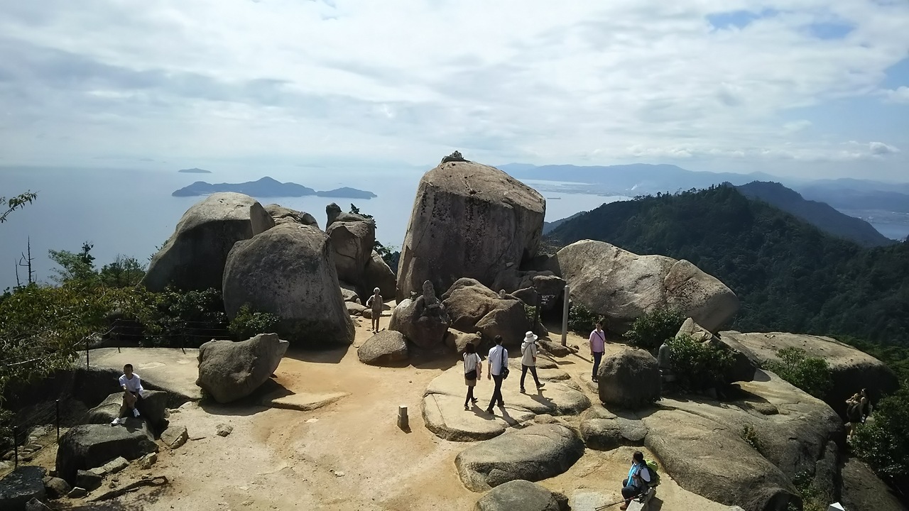 宮島に来たら鳥居だけではなく弥山まで登るのがおすすめです。ロープウェイを利用して30分ほど登れば頂上です。山道ですが、程よいハイキングで頂上に着いたときには達成感ありますし、登る価値はある景色が待ってます。途中も変わった岩があったり楽しみながら行けるので。