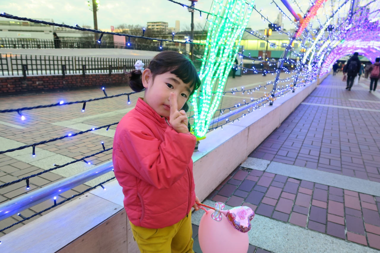 ピューロランドで遊び、夕方の帰り道、多摩センターの駅前通りは、イルミネーションに飾られていた。多摩センターには、ピューロランドがしっかりと寝付いているよう。地元の方は、すっかり慣れっこの様だが、初めて見たので、イルミネーションがかわいらしかった。京王線での帰り道、よみうりランド駅のホームにもイルミネーションが、よみうりランド本体の宣伝の為でしょうが、こちらも良かった。