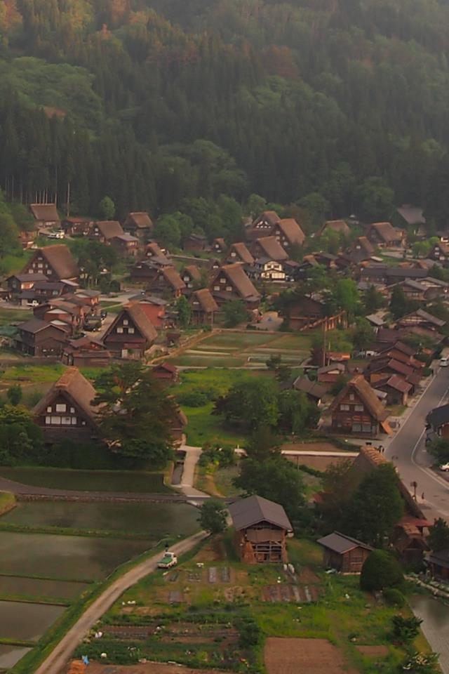 世界遺産エリアの奥、展望台へ上がるとっつきのところまで歩いてみました。が、背中にカメラ機材・三脚の入ったリュックを背負って徒歩で坂道を上がる気にはなれず…。遅い時間でしたのでシャトルバスも終わっているようでした。そんなわけでクルマで山の裏側を大回り、農地の中の細い道を抜けて展望台に上がりました。駐車スペースはありますが広くはなく、10台くらいも入れば満車でしょうか。これで駐車車両がいっぱいだったら?と思ったものの、幸いに先客は1台のみ。周囲の山に陽が落ちるまでここで撮影を楽しんできました。