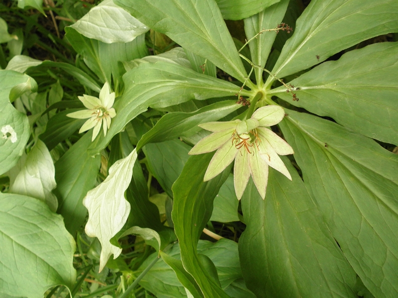 別当出合より甚之助避難小屋、南竜道分岐経由南竜山荘までの6時間のハイキング中、至るところで,代表的なものでもシモツケソウ、アラシグサ、センジュガンピ、キヌタソウ、ツマトリソウ、オオバミゾホウヅキ、キヌガサソウ、マイヅルソウ、ヨツバシオガマ、キバナコマノツメ、イブキトラノオ、ハクサンフウロ、テガタチドリ、ミヤマダイモンジソウ、ミヤマガラシ、ミツバオウレン、ショウジョウバカマ、ハクサンチドリ、イワイチョウ、クロユリ、ミヤマダイコンソウ、ニッコウキスゲ、ハクサンコザクラ、ミヤマキンポウゲ等40種以上の高山植物を満喫できました。標高差もあり、また気温が高くバテましたが、疲れを吹き飛ばしてくれる花達でした。宿泊先南竜荘ケビン(本館と離れた別小屋)は個室になっており寝易いが、傍のトイレは汚く使用しにくく、本館のトイレを使用しました