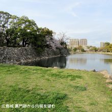 広島城にはもともと内堀、中堀、外堀と三重の堀に囲まれた防御性に優れたしろだったようですが、現在は、この内堀に囲まれた本丸と二の丸のみとなっています。それほど広くはないので、ゆっくりと内堀に沿って広島城を見学するのも風情が感じられます。