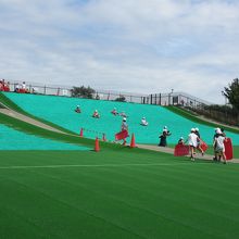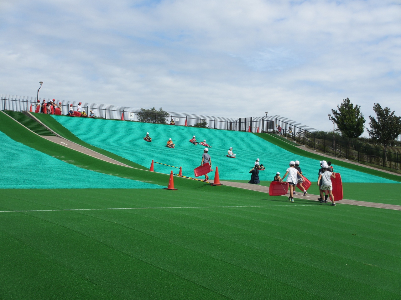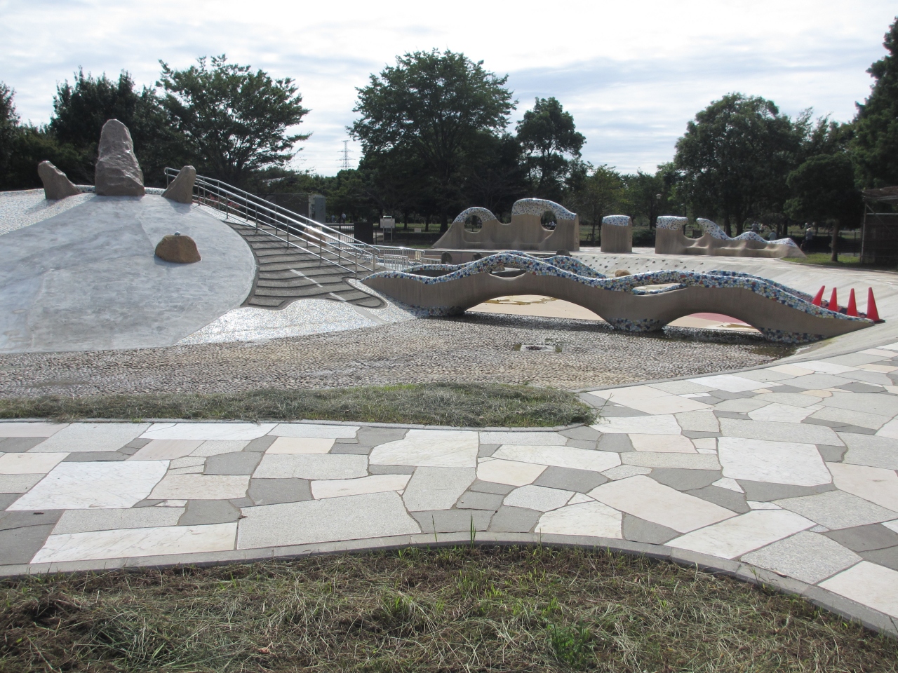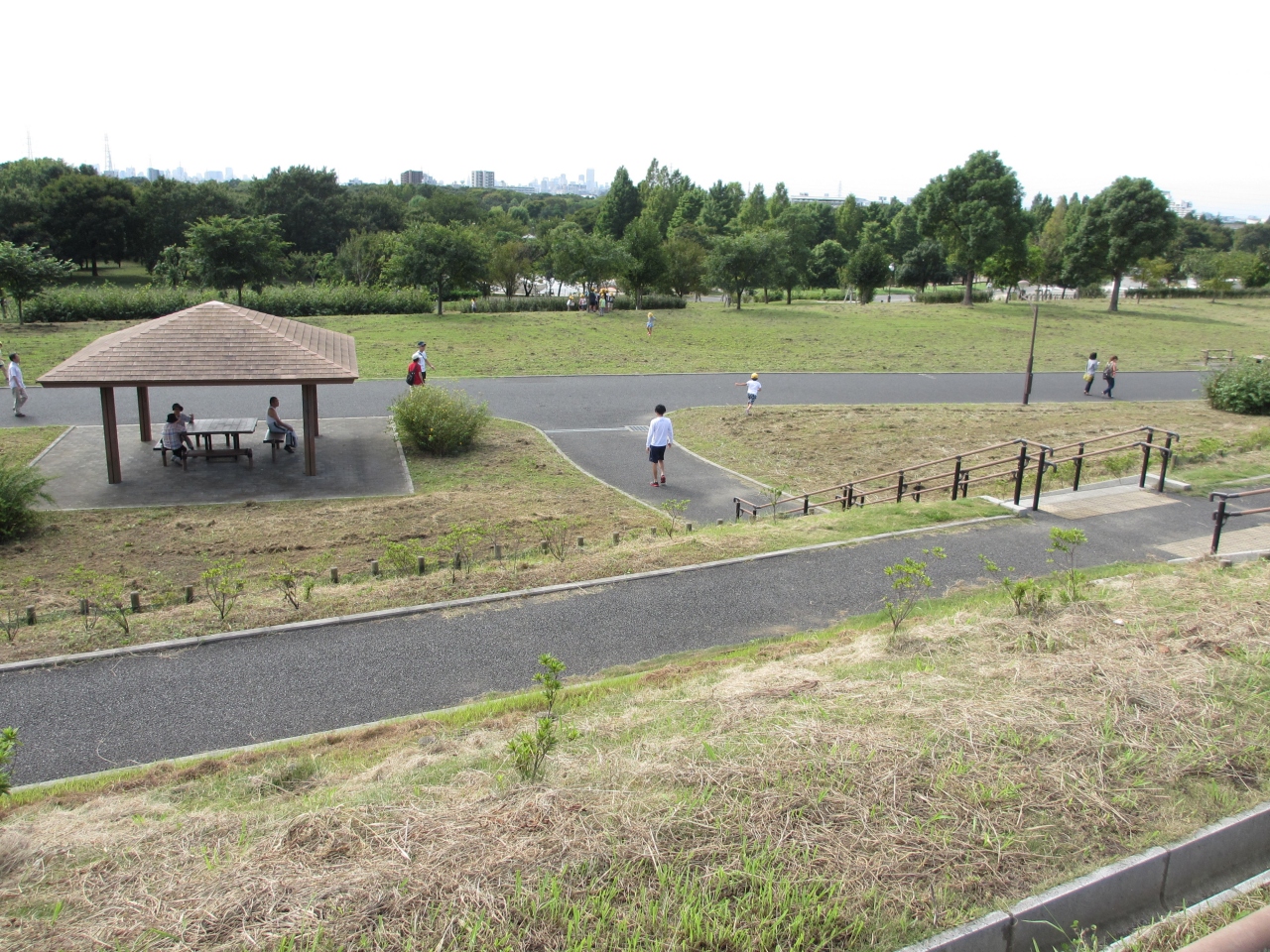 車で入谷に用事があり、寄りました。舎人公園駅をはさんで草地が広がり池のある東側とスポーツ施設がある西側に分かれています。複数の小学校の課外活動が行われていて子供たちが元気よく走り回っていた東側を散歩しました。小学生以下の児童幼児対象の無料ソリゲレンデ、夏期限定小学3年生以下のためのじゃぶじゃぶ池など特徴的な施設のある広い公園です。親子連れグループや年配者がおしゃべりをして利用していました。自転車を乗り入れられるので広い園内の移動が楽です。西側の登録制ドッグラン、テニスコート、陸上競技場など多くの人たちが利用していました。周辺は倉庫や流通施設が集まり住宅街ではありませんが、自転車で気軽に自然とふれあいに来られる人たちが羨ましかったです。