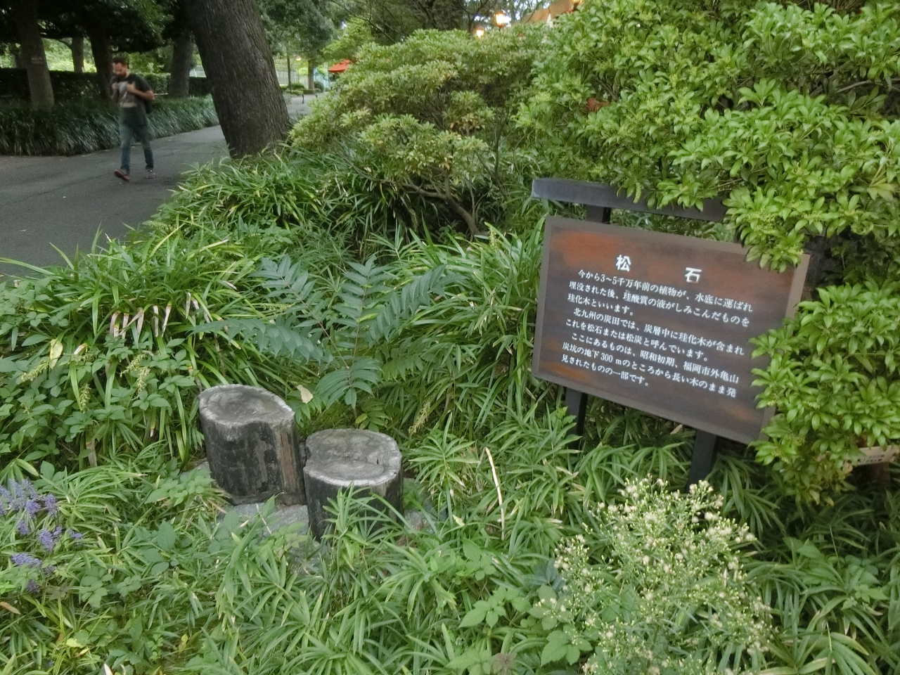 日比谷公園ははいろいろなものがあります。単にくつろぐだけでなく、園内をくまなく歩くと様々な発見があって面白いです。この松石もそのひとつ。よく見ていないと、うっかり見過ごしてしまいそうなものですが、石の上に松の一部が2本乗っかっているように見えます。なんだろうと横の案内表示版を見ると、その意味や概要が明記されていました。