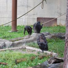 旭山動物園の中程にあります。建物の上の方には、チンパンジー達が遊べるレールのような遊具が沢山取り付けてありました。訪れた時は、あいにくの雨空で、チンパンジー達は、屋根のある場所でのんびりと過ごしているようでした。チンパンジーの母親が子供を抱きかかえている姿も見れました。
