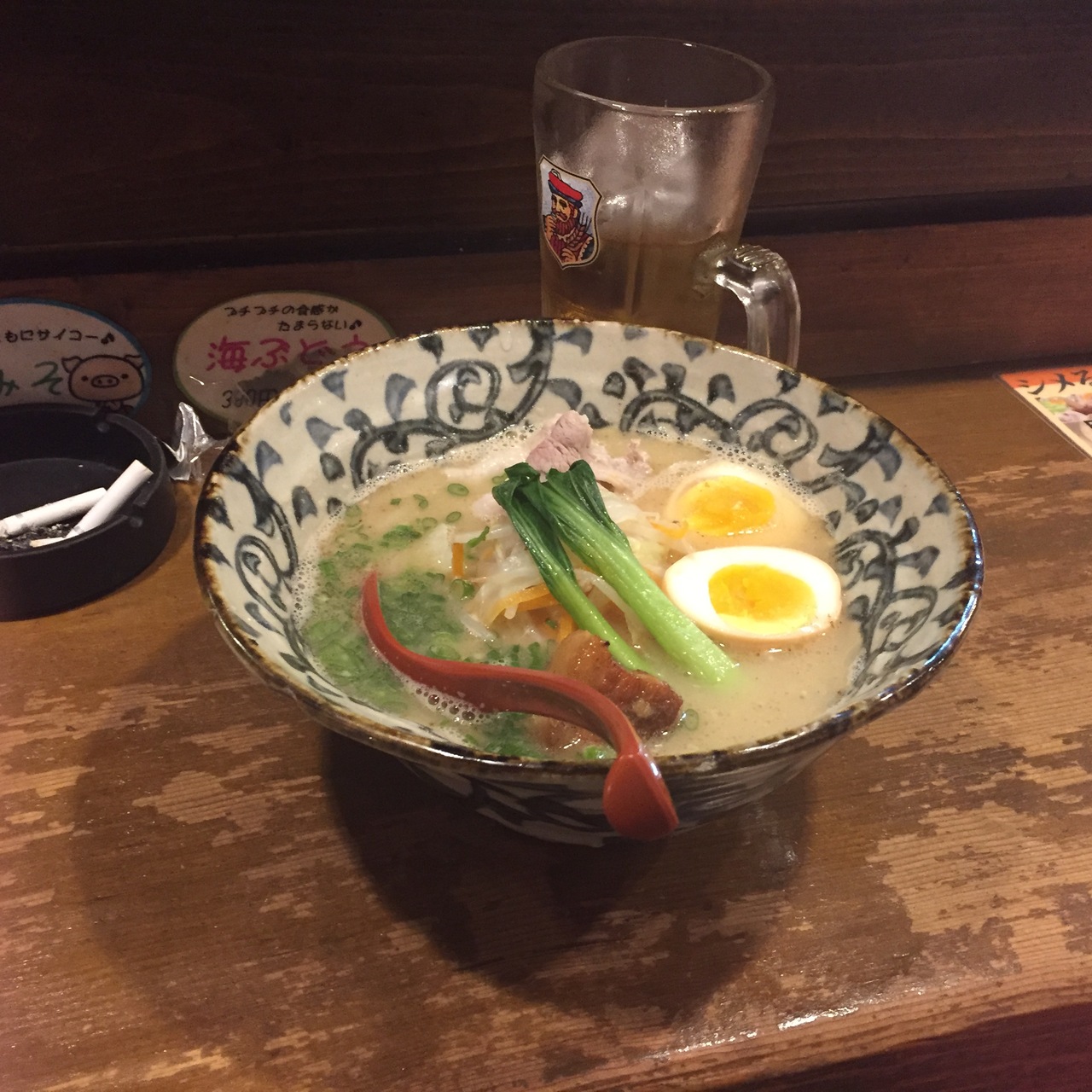 阪急庄内駅から徒歩5分くらいの、ラーメン居酒屋という珍しい業態のお店です。飲む、食べる、締めるがすべて良いとのことで、私は締めのラーメンを食べました。ラーメンは、はっきりしない味で、とんこつとも鶏ガラともわからない複雑な味で880円もしました。ラーメン単品では他にもっと美味しいお店が近くにあるので、他のお店を利用したほうが良いと思います。