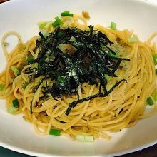 お醤油のあっさりパスタです。