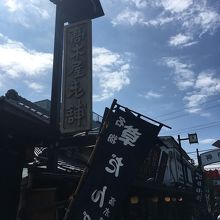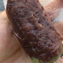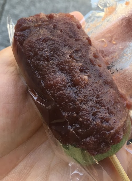 草だんご160円をいただきました。店頭にあるベンチで食べていたら、お店の人がお茶を持ってきてくれました。