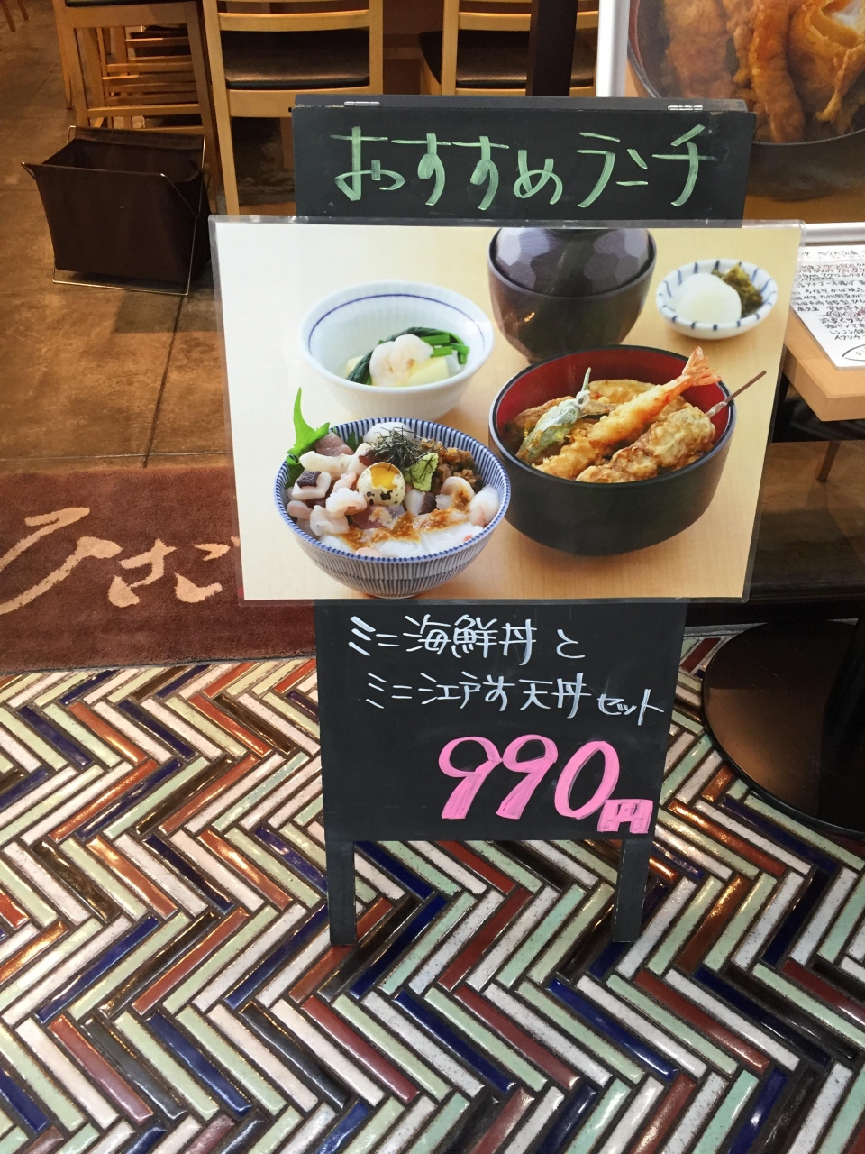 お勧めランチの海鮮丼と天ぷら丼二つが食セル二色丼セットと旬なさんまプレートを美味しく頂きました。