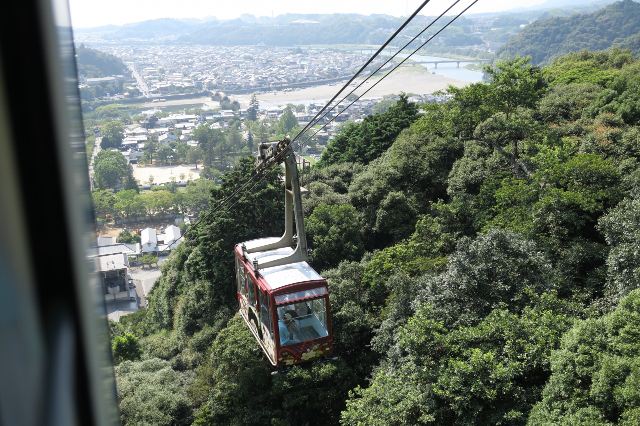 錦帯橋近くから,岩国城近くの山頂駅まで,乗っている時間は2~3分の短いロープウェイです.