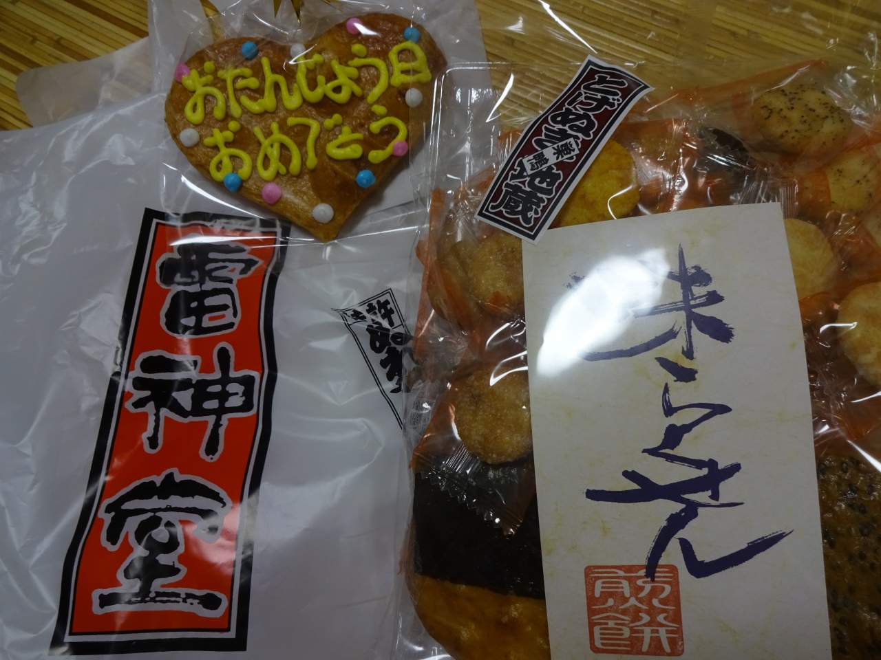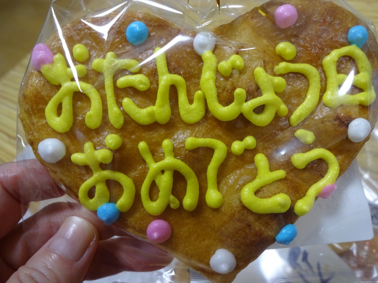 せんべいにメッセージを書いたデコせんは誕生日の家族用に購入。