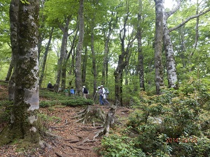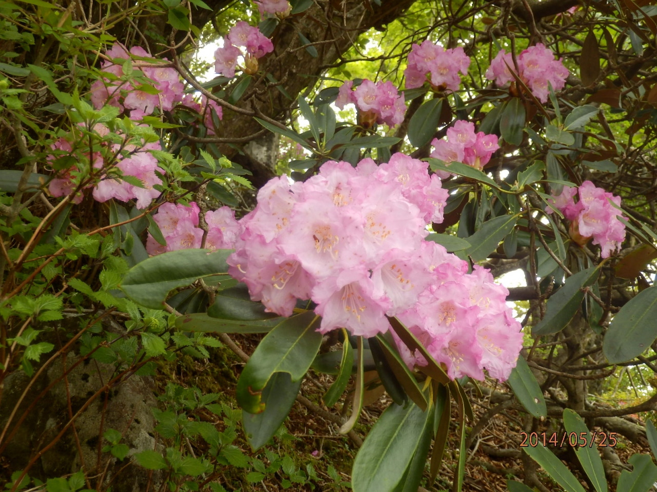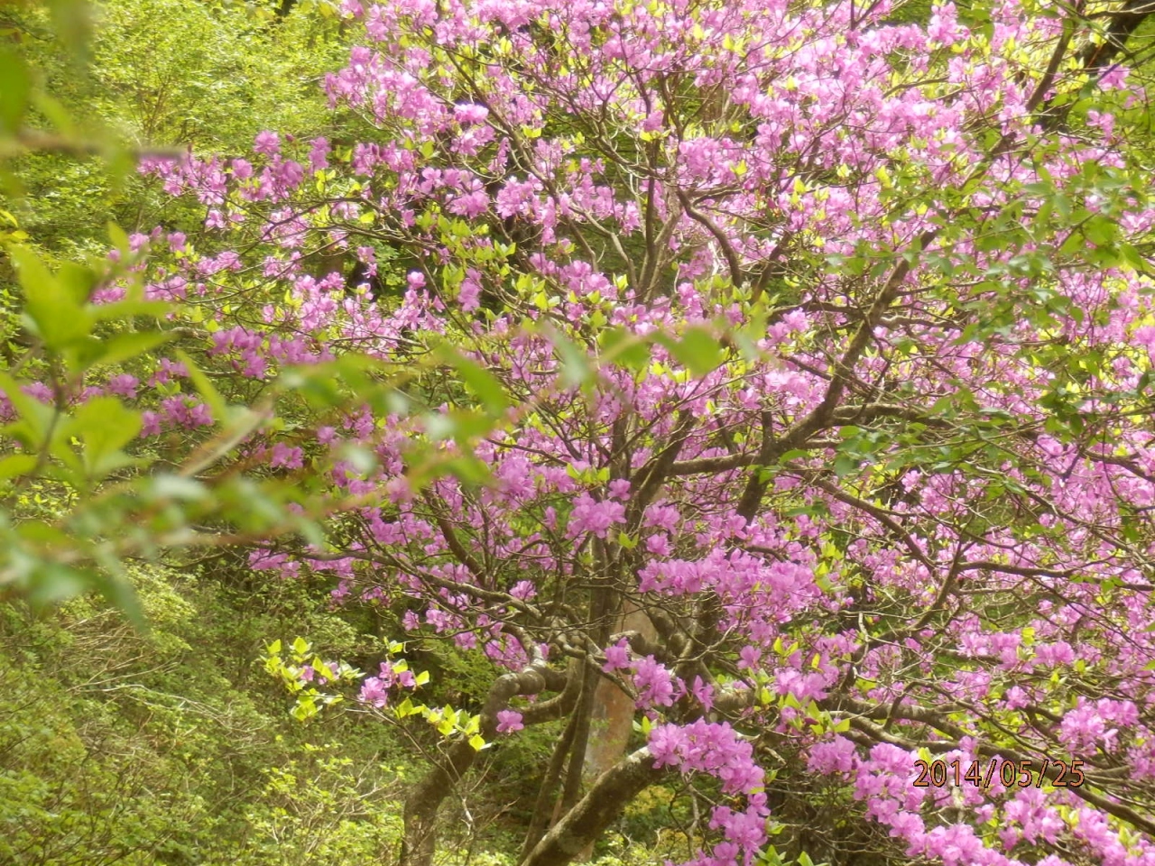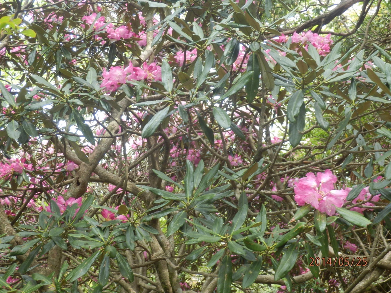 登山口を出発し、反時計周りに登り1時間10分ほど登ると白、ピンク、薄いピンク色したアマギシャクナゲの花にお目にかかれるようになります。その後も、万三郎山頂付近までさらに万次郎山頂まで続いていました。今最盛期で圧巻です。さらにピンク色のミツバツツジの花、白いアセビの花、ヒメシャラ、ブナの若葉の緑が加わり、素晴らしいというほか表現しようがありません。都会の喧騒を完全に忘れさせてくれます。登山としては初級とありますが、アップダウンが数回あり、またザレているところもあり以外とハードでした。