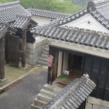 二ノ門をくぐるとすぐに三ノ門。一ノ門、二ノ門と異なり、脇戸を省略した高麗門で本瓦葺。西は寄掛柱を穴蔵石垣に接し、東は寄掛柱に三ノ門東塀が接続している。構造様式は一ノ門と同様で、門扉は横板張りの上部に竪格子が付けられ、その上に格子欄間がある。小さいながらも頑丈そうな門でした。
