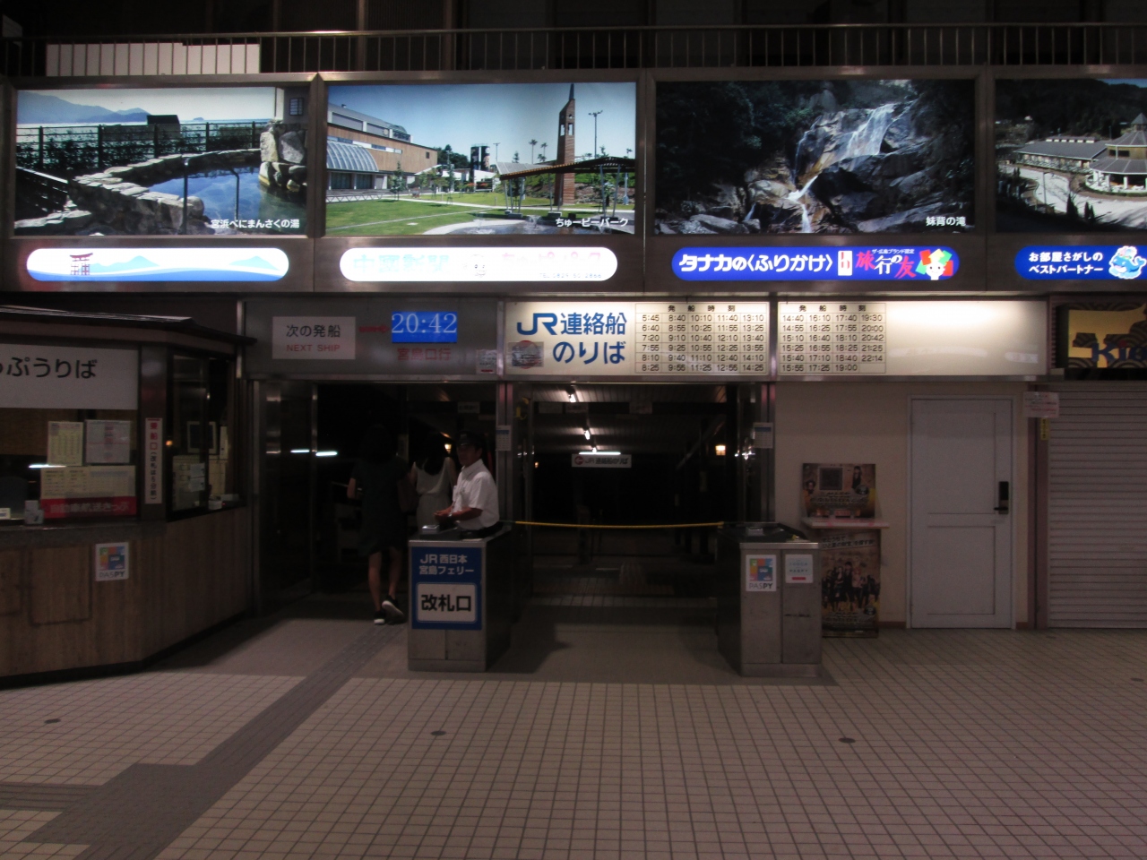JRのフェリーは22時台で、松大汽船の方は20時台が最終便でした。当然のことですが、夜の時間帯になると運航本数は少なくなりました。乗り遅れたときはどうするのでしょうか。厳島神社や大鳥居が見える場所からフェリー乗り場まで意外と距離がありましたので、注意が必要です。