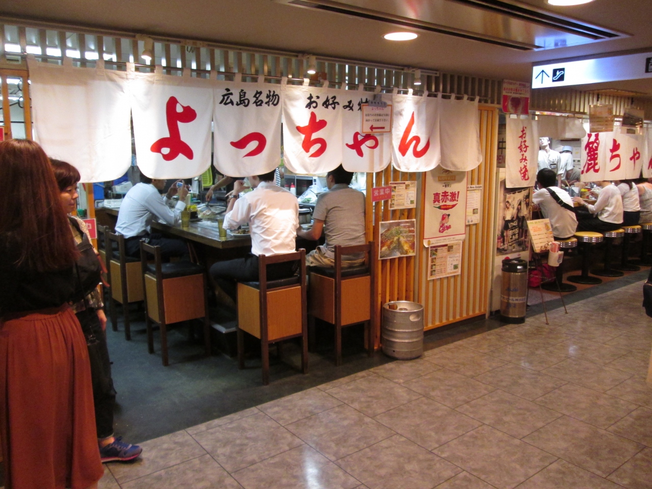 広島風お好み焼き「よっちゃん」が広島駅南口にあるASSEの2階にありました。駅ビルという立地の良さもあり、ピーク時間帯ではありませんでしたが、到着するとすでにお店の前に行列が出来ていました。広島のお客さんはマナーが良かったです。