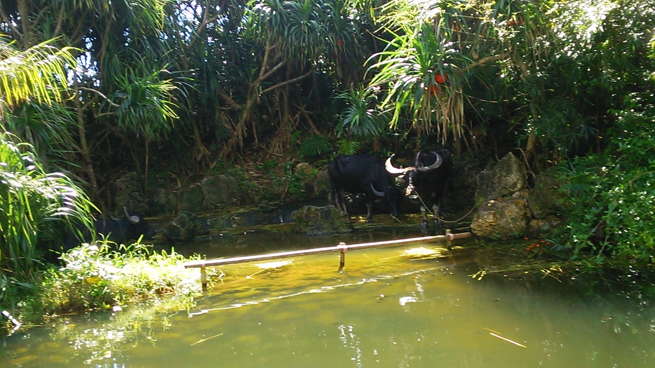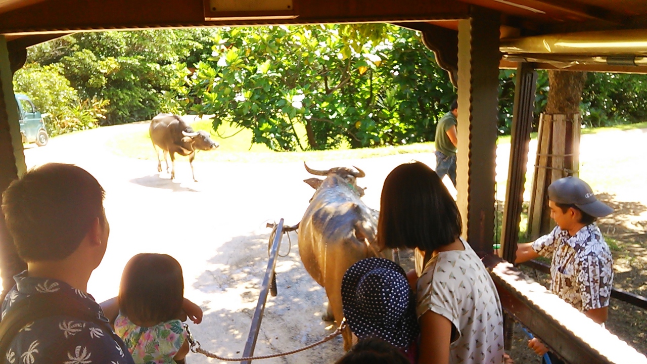 沖縄本土の中心にあるここビオスの丘は、亜熱帯の森に棲息する植物や自然の魅力を肌で感じることができ、船や水牛でめぐる園内は沖縄の自然を満喫できます。湖水鑑賞船に乗り、川をせき止めて作ったという運河をジャングルクルーズすると珍しいランや水牛を見ることができます。水牛車もゆったりと園内を散策でき貴重な体験となりました。