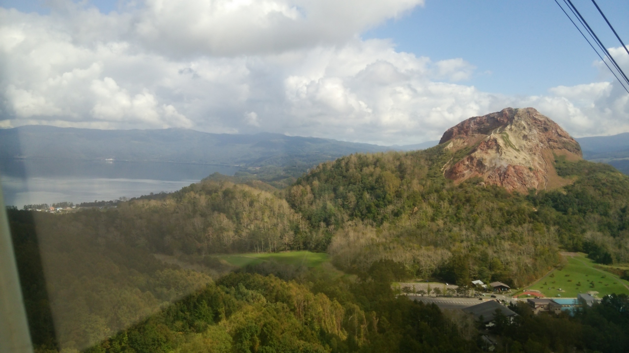 茨城から遊びに来た妹と、昭和新山へ遊びに行きました。前回は雪の季節でしたが、今回は緑がきれいで、ロープウェイから見る昭和新山も下から望む昭和新山もとても絶景でした。紅葉の季節はもっときれいだと思います。ロープウェイ乗り場にお土産物屋さんがあり、有名な木彫りの熊?がありましたが、鮭を食べているのではなくて鮭に食べられている(かまれている)熊がいて妹と二人ちょっとうけました。
