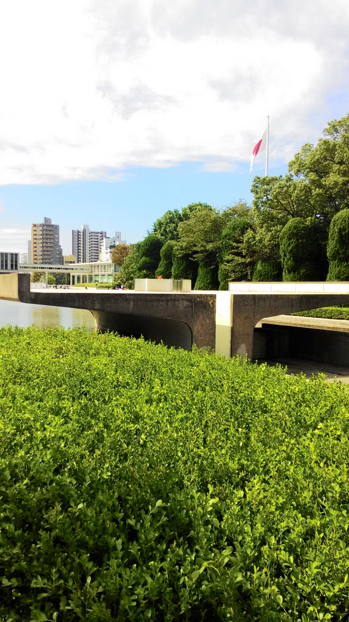 広島市平和公園内の原爆慰霊碑の裏側の平和の池の中で燃え続けている灯です。1964年の8月から今までずっと消えずに燃え続けています。核兵器が地球からなくなるまで燃え続けるという反核の決意が表れた灯です。