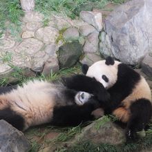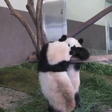 双子のパンダがじゃれあっているのを見ることができます。見ていて飽きません。室内なので雨も関係ありません。パンダのからだがすごく柔らかいことを感じます。時折,掃除やエサの交換のために出てきていないことがありますが,掃除やエサ交換が終わったらすぐにでてきます。