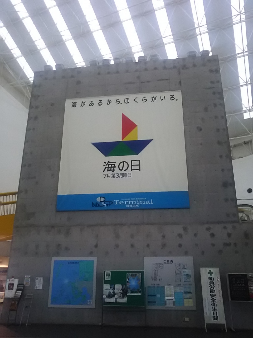 館内に入ると大空間が広がり、乗船待ちの子供たちは楽しそうに走り回っていたりして、「海の玄関口」らしい雰囲気を感じました。