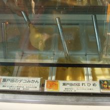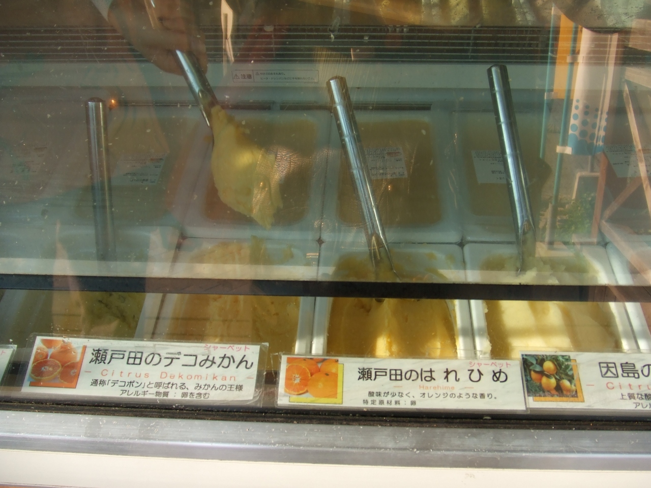 さすがは愛媛。みかんのジェラートがいろいろあり、デコポンのシャーベットとぼっちゃん牛乳でつくったというぼっちゃんソフトを食べました。暑い日だったせいもありとても美味しかった。みかんジュースもお風呂あがりに良さそうです。お土産も色々売ってました。