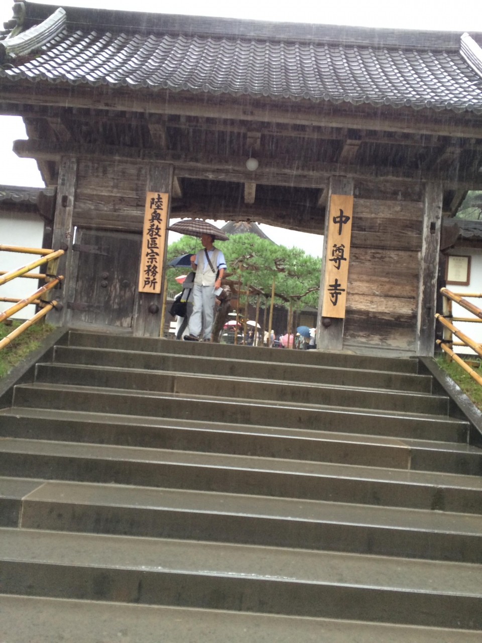 中尊寺の中心となるお堂で、年間を通じて多くの法要・儀式・行事が行われています。本堂は明治42年に再建され、本尊の釈迦如来座像は丈六尺の大きな仏様で金色に輝いていました。現在の仏像は平成25年に建立・安置したものだそうですから3年前なので綺麗でした。