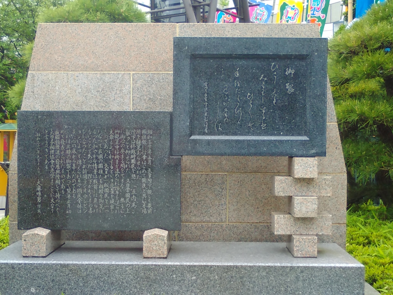 相撲博物館の入口の近傍には、昭和天皇の御製の石碑が立てられています。