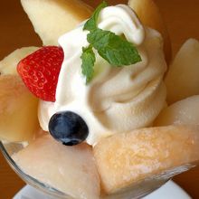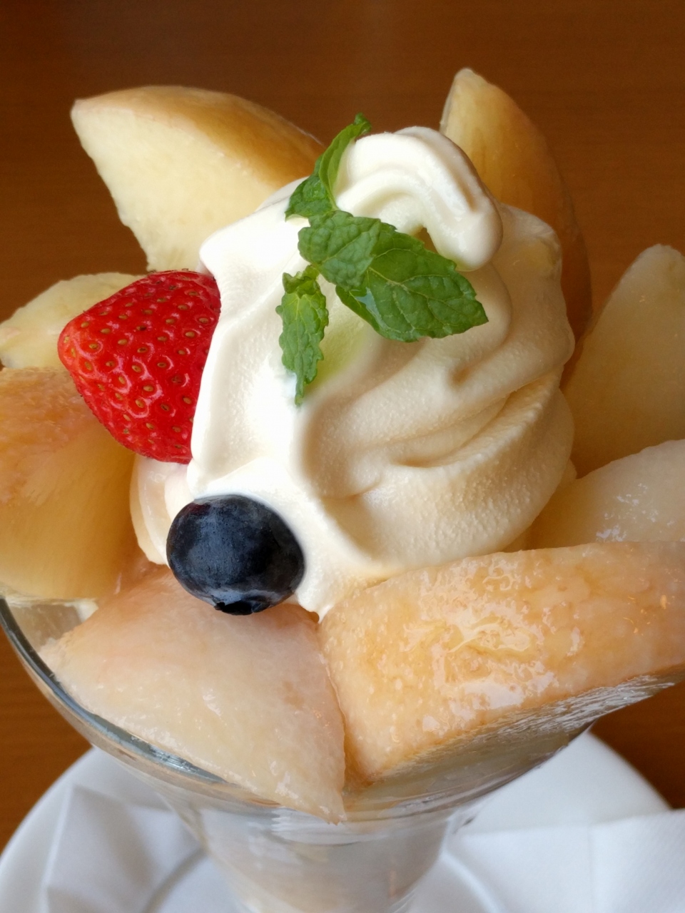 注文してから15分後に『水蜜桃パフェ』が運ばれてきました。