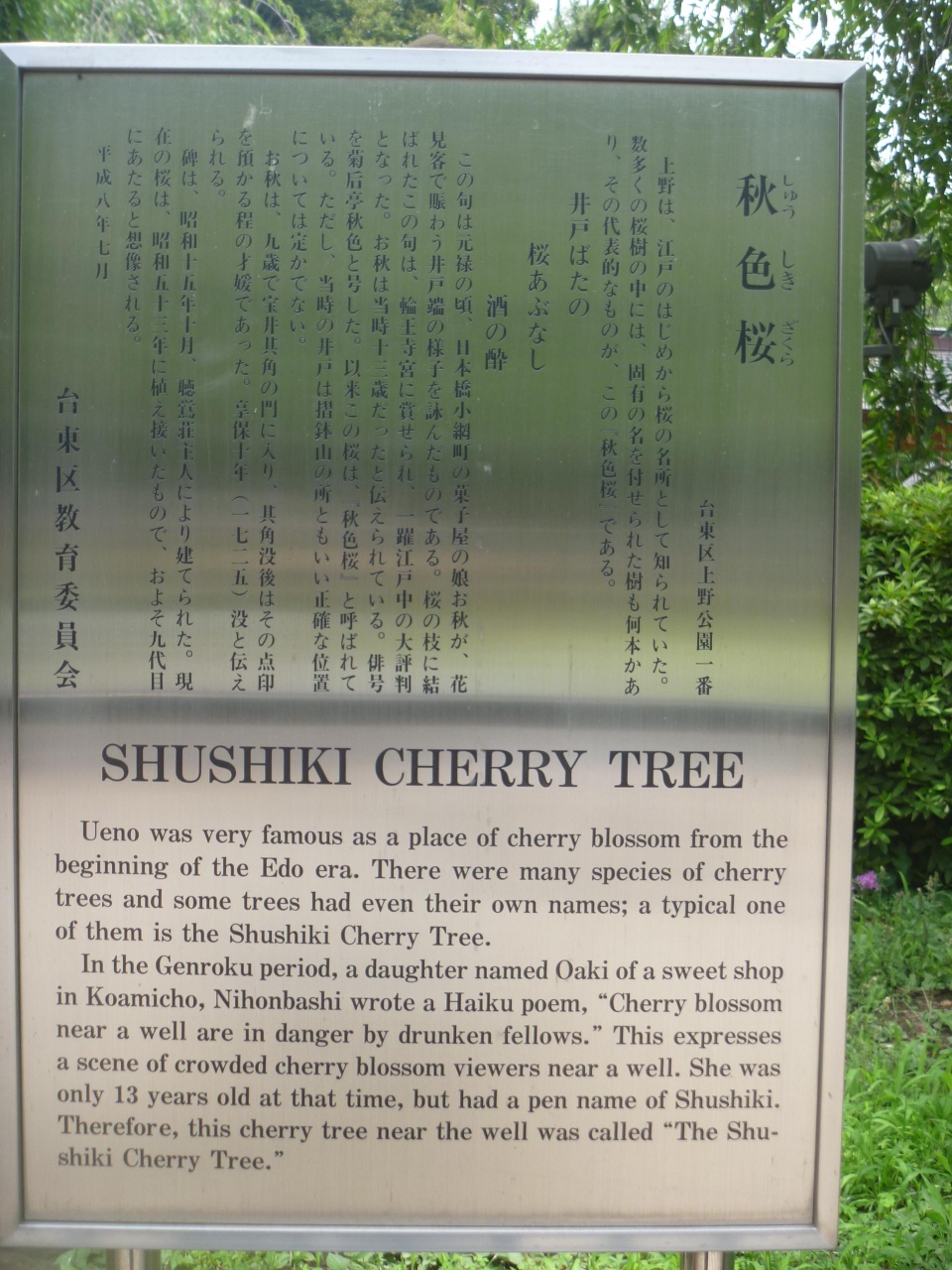 上野公園にはたくさんの碑がありますが、これもその一つ。江戸時代初期の重要人物である天海の毛髪が収められています。しかし説明書きを見ると「108歳で没」や「僧侶なのに毛がある」という矛盾点もあります。ツッコミを頭の中ですると印象が残ります。
