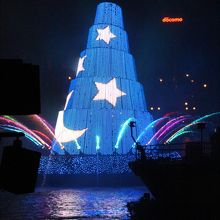 オチェーアノのテラスから初めて観賞しました。ショーが始まった頃から小雨が降り始め、ショー自体は最後までやってくれましたがテラス最前列ではカメラが濡れそうだったので撮影は途中で諦めました。