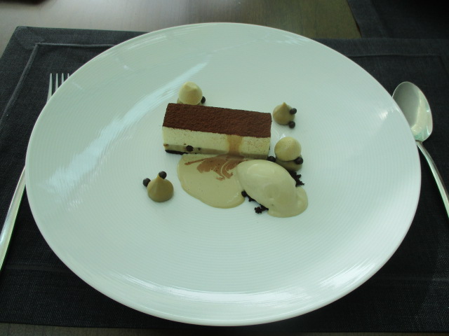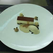 最後のデザートはアイスクリーム付き、ビターソースかけのティラミス、クッキー、生チョコまでありました。
