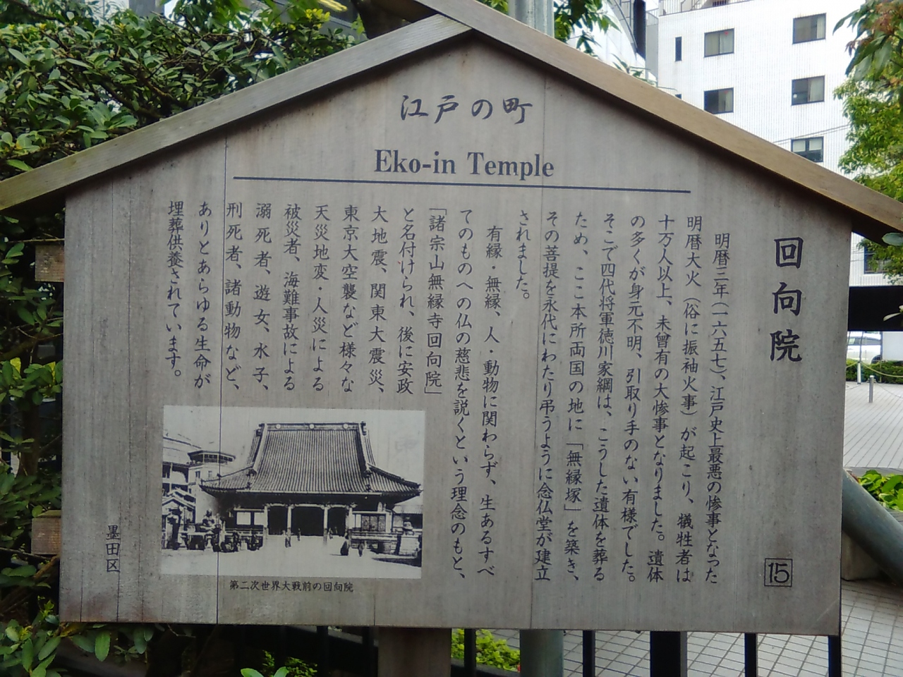 本所回向院は、振袖火事と呼ばれた明暦の大火の焼死者10万人を幕府の命令により葬った万人塚を始めとして、安政大地震の犠牲者や水死者や焼死者・刑死者など、横死者の無縁仏も埋葬する庶民を対象とする仏事に当たってきました。