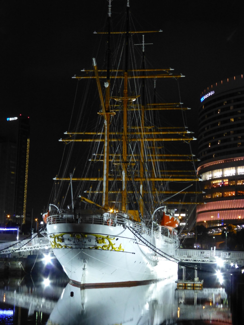- ライトアップされた(旧)日本丸はきれいでした.