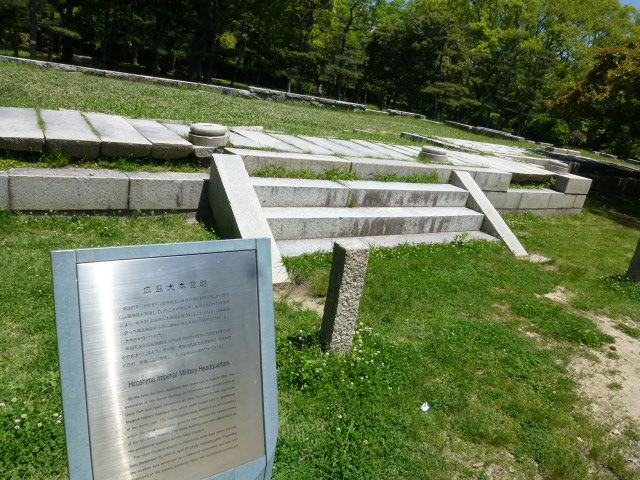 今日は広島に来て広島城を散策しています。そしてその城内の本丸の中心部に「広島大本営跡」はあります。1877年ここに2階建ての木造洋館である広島鎮台司令部が建てられました。その後第5師団司令部として利用され、日清戦争時には天皇が戦争を指揮する機関である大本営となっています。しかしその後ここも原爆により建物は倒壊し、現在は基礎などの石だけが残っています。こういう建物は狙いの的としてなっていたのでしょうね。戦争の遺産として大切に残しておきたいものです。さぁー周囲を史跡を散策しましょう。