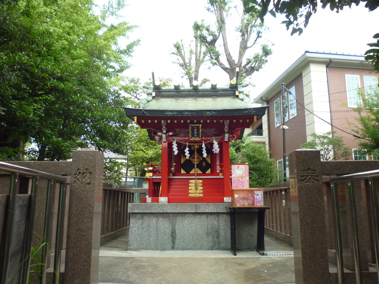 富岡八幡宮の東側にあります。鳥居をくぐって進むと小さな赤いご本殿がありました。弁天池には鯉が泳ぎ、赤い橋が架かっていて静かな雰囲気でした。昔から地元の人々が、安全を祈願して、信仰してきた大切な神社です。
