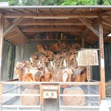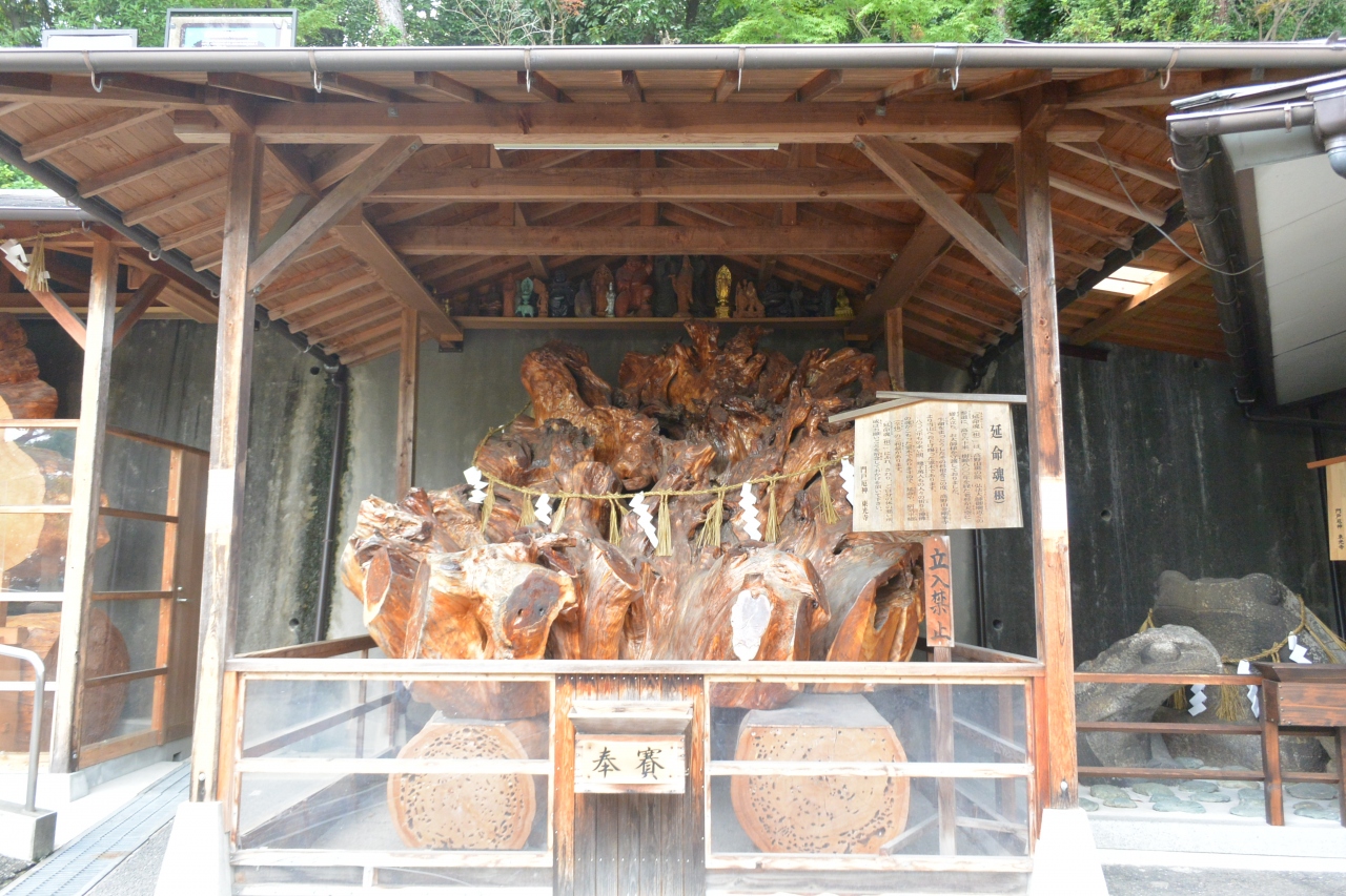 高野山の奥の院近くの参道にあった杉の木の根を東光寺が賜ったもので、根=魂で延命魂と呼んでいます。この霊木の根をさわると、自分の悪いところが治る御利益があるそうなので、しっかりと触ってお願いしてきました。