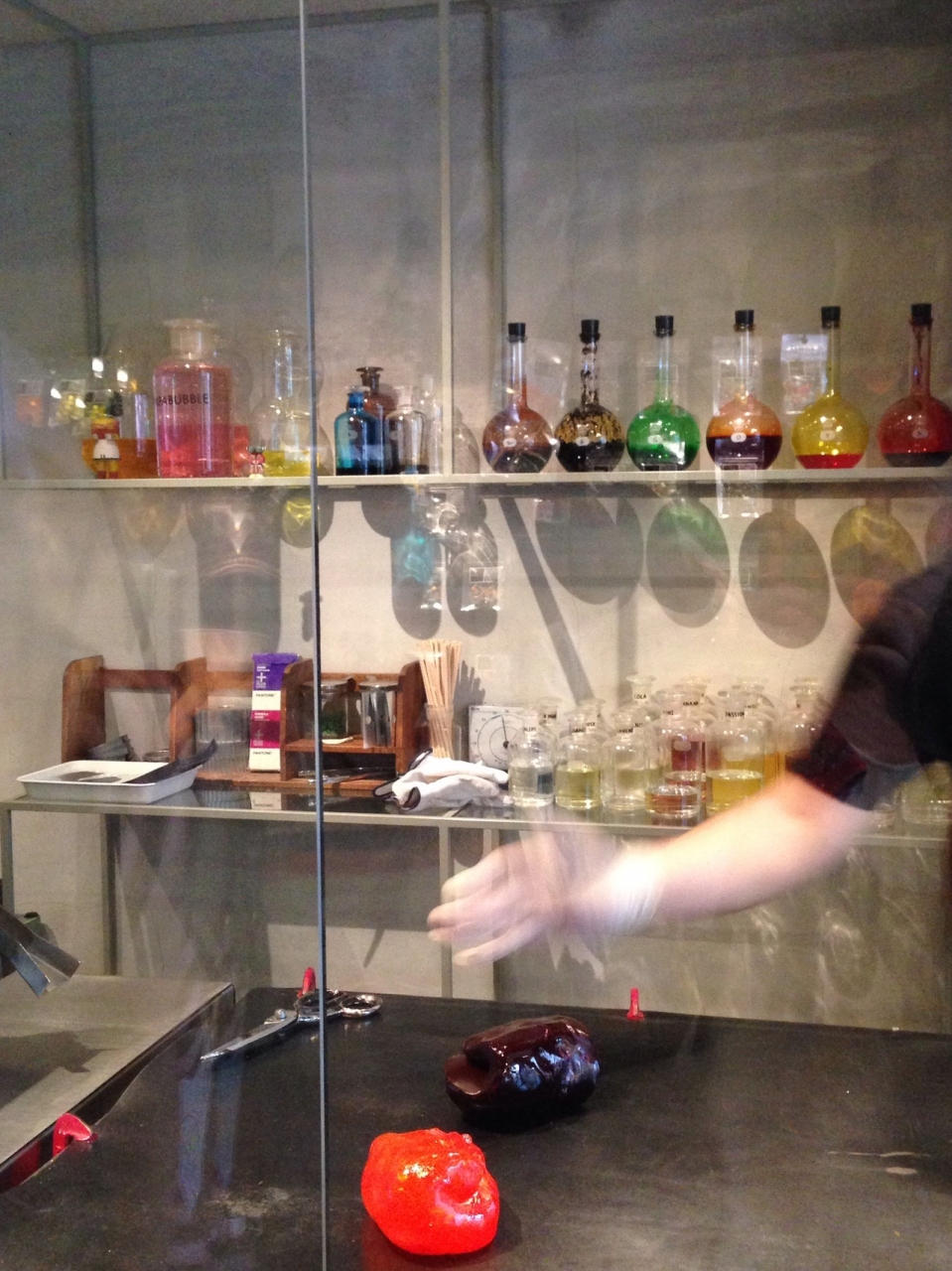 理科の実験室のような 小洒落た調理場で繰り広げられる飴作りショー!手際の良さと次々に形をかえる飴に大人も釘付けになります。 最初から最後まで飽きる事なく楽しめます。