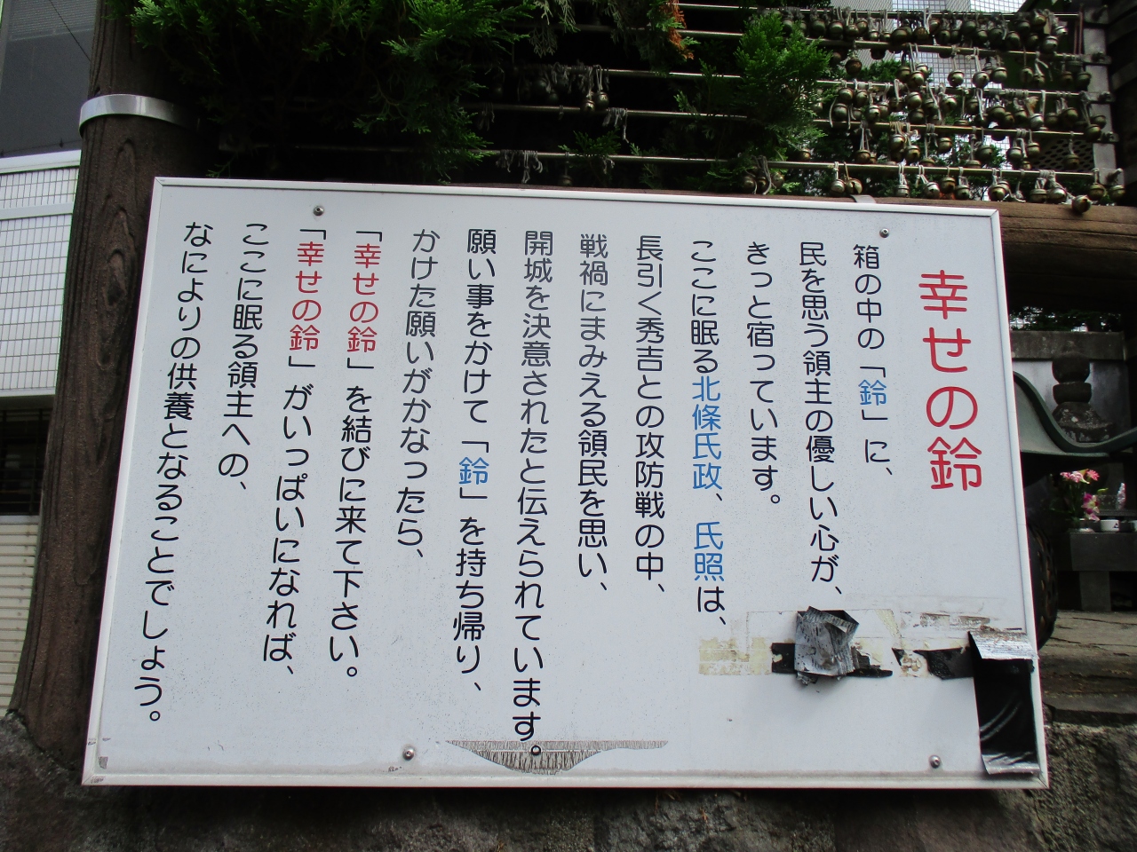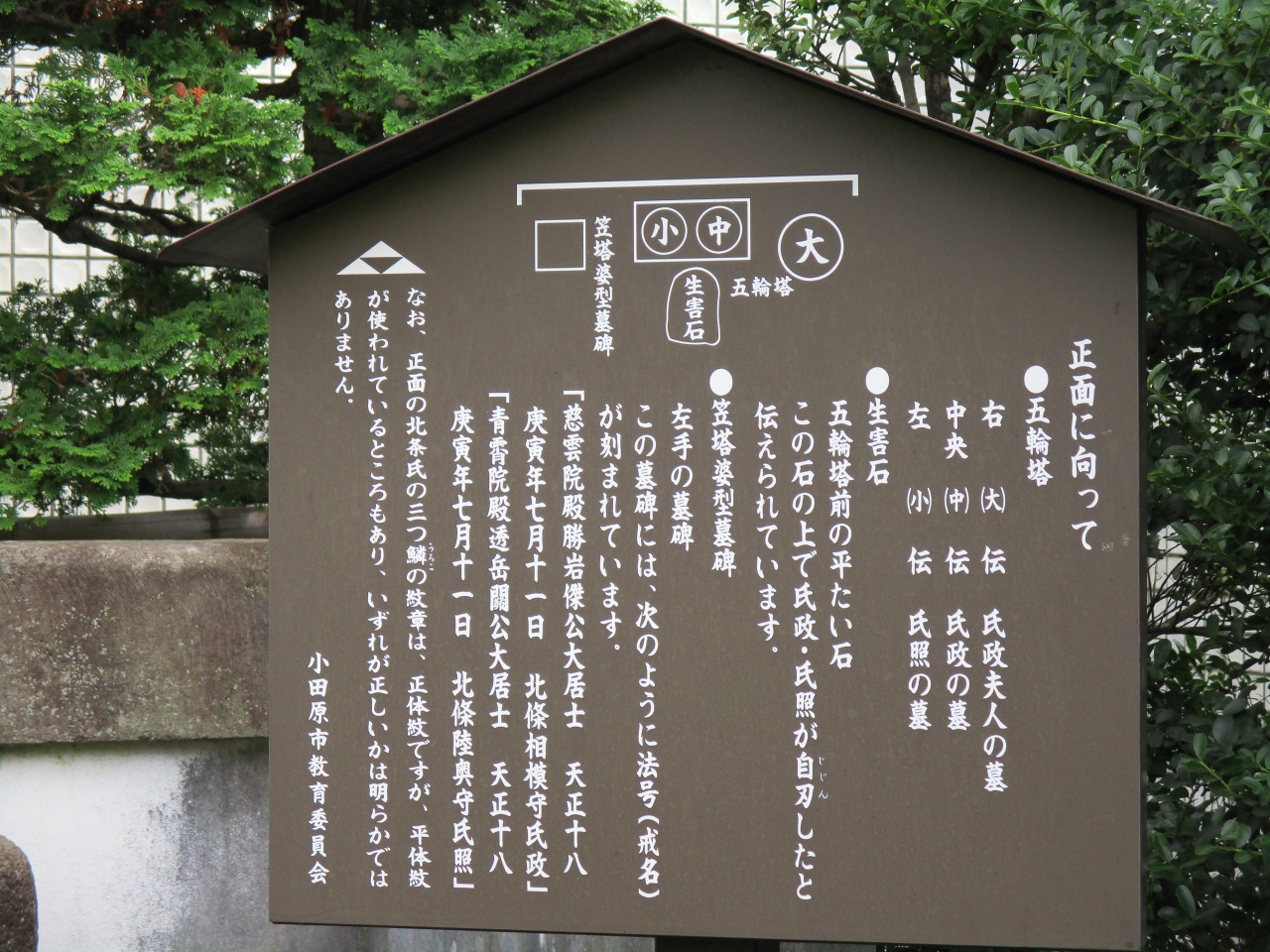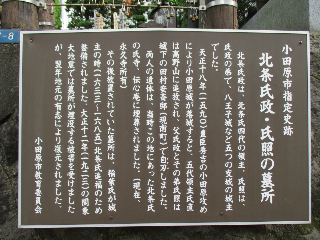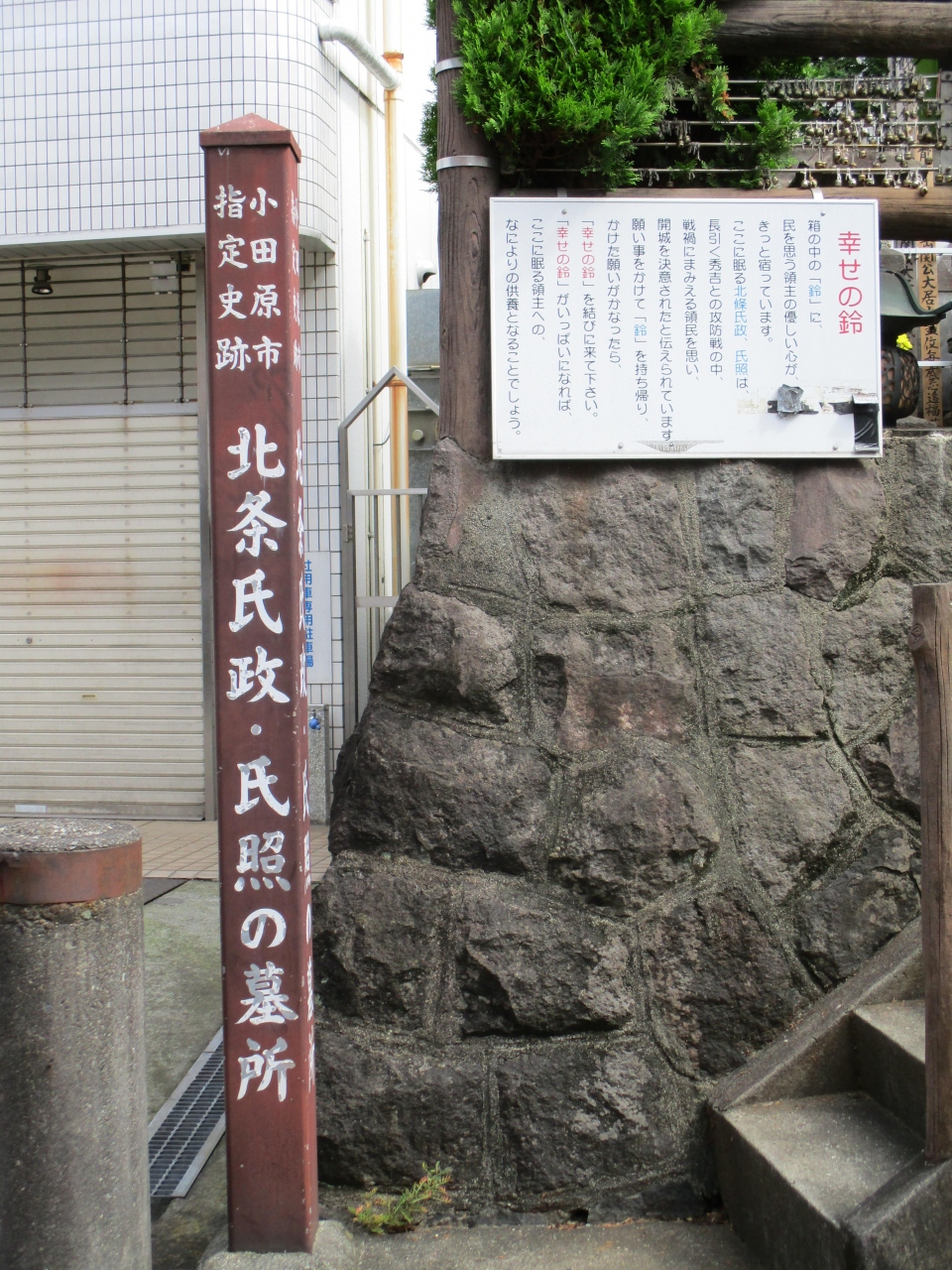 小田原駅東口から飲食店街を抜けた目立たない場所に、北条氏政・氏照の墓所がありました。小田原城とは反対方向、ランチを食べるお店を探していて偶然見つけたのですが、妻と二人で階段を上がり御参りしてきました。狭い墓所に氏政夫人の墓、氏政の墓、氏照の墓が並んでいました。