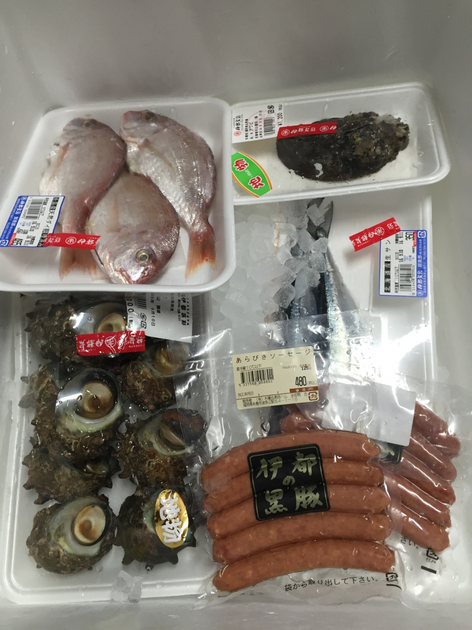 糸島の帰りに友人宅でやるBBQ用にお魚などを買って帰りました。