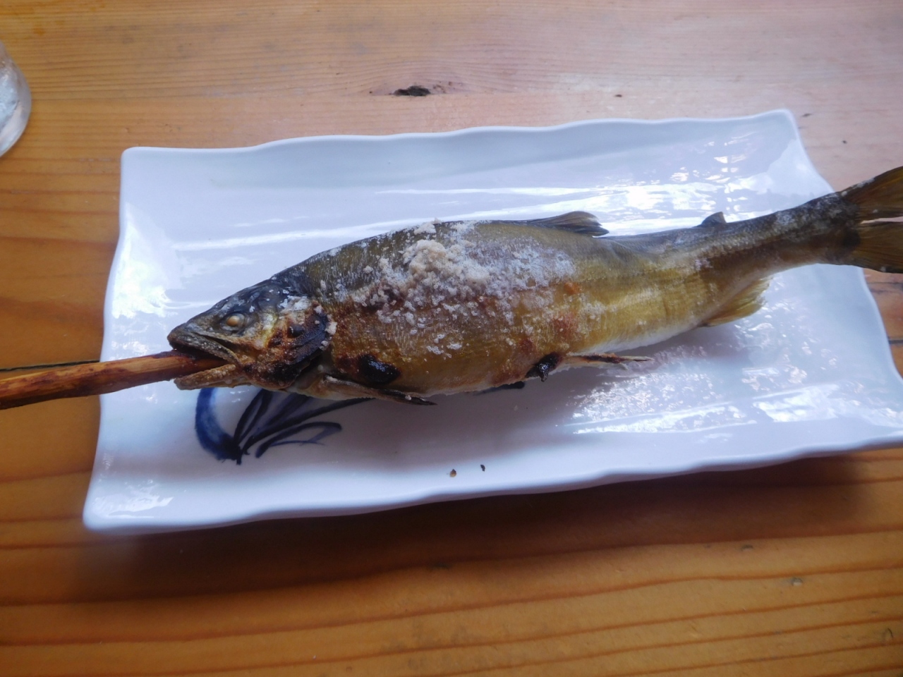 また囲炉裏の火の周りには 大きな鮎やあまご、この地方独特のでこまわしと言うものも焼けてました。