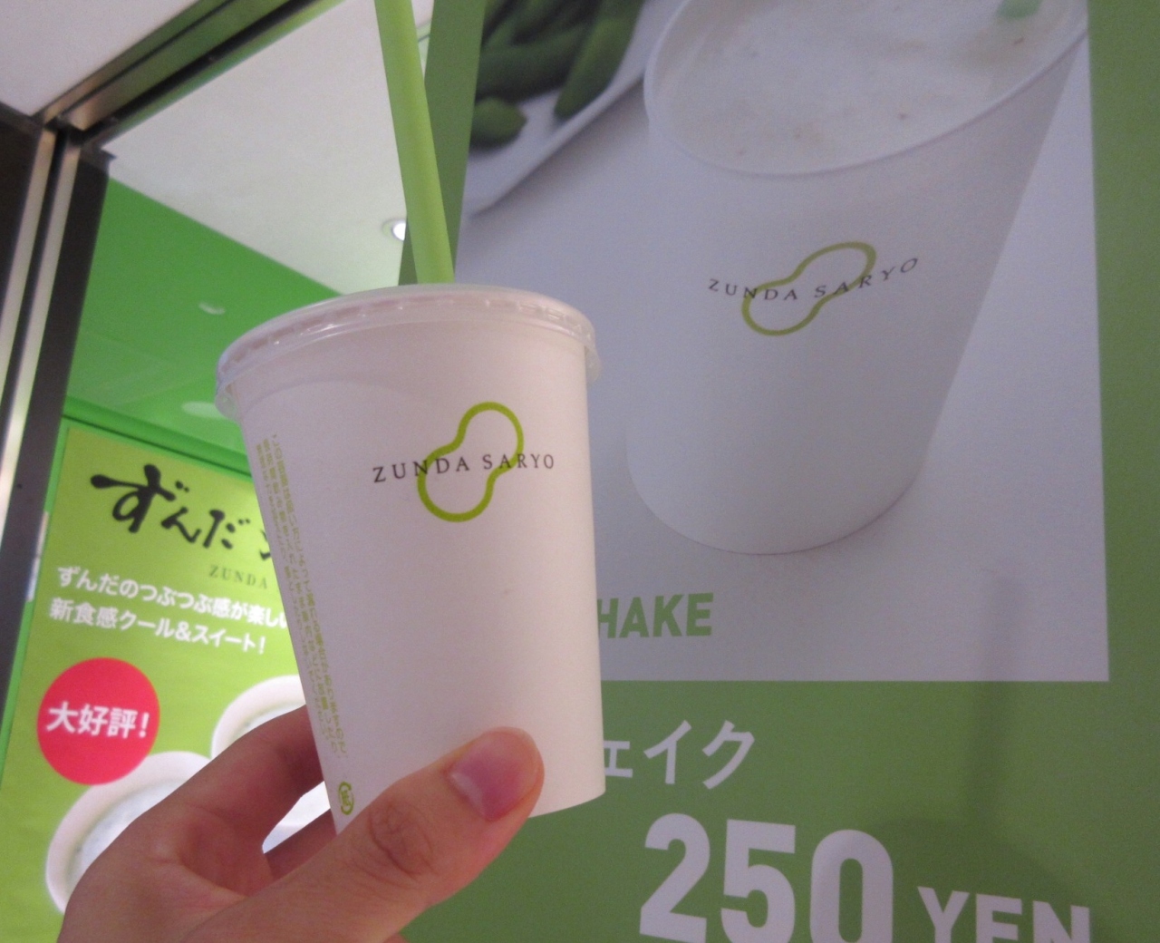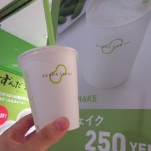 枝豆の粒のためか吸ってもなかなか飲めませんでした。自分には想像より甘く感じ、小さいですが最後まで飲むのはきつかった。シェイクエクセラはホイップクリーム付きというので普通のシェイクで良かった。甘いもの好きの方には良いでしょう。
