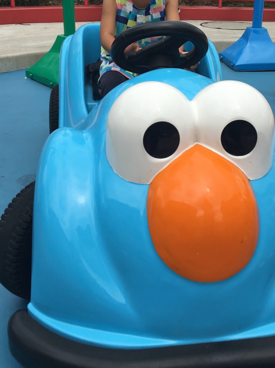 3歳の子供も一人で乗れるセサミストリートのゴーカートです。今まで、大人と一緒に乗るものしか乗ったことが無かったので、娘は初めての体験でした。なかなかアクセルを上手く踏めなかったようですが、一人で乗れたという自信がついたようで、とても嬉しそうでした。