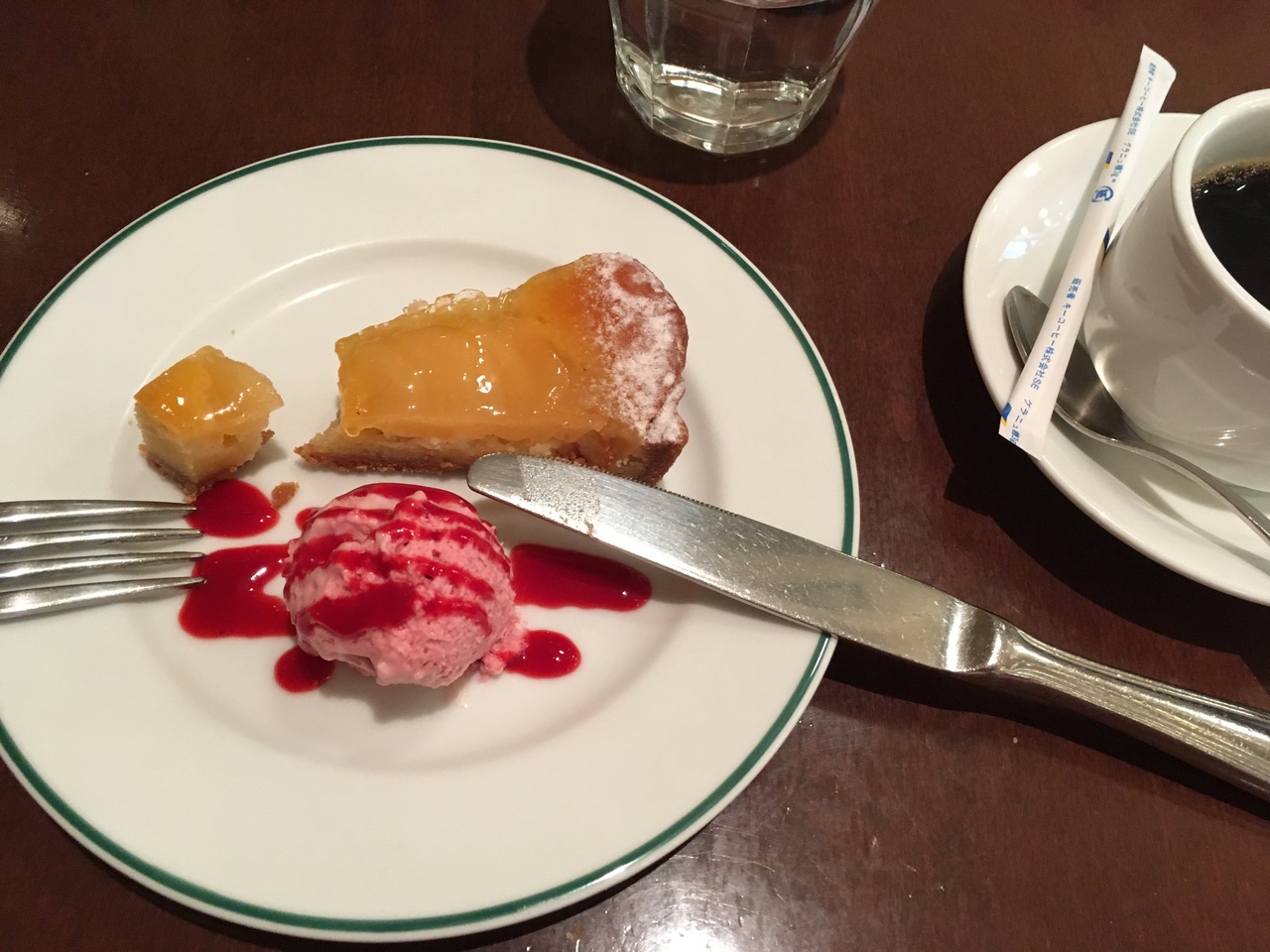 パリのブラッスリーを思わせる、こじんまりとした店内。机の間隔は狭いが、平日は入れ替わりもあり、それほど気にならない。ランチは1080円で日替わりの魚と肉の2種類。スープ、パテ、サラダ、チーズシュー、リエットの5種が盛られた前菜とメインで、魚料理は皮がパリッとしていて、添えられた野菜もボリュームがあっておいし。そのほかにもステーキランチなどもある。1:30すぎからはコーヒーが無料でついてくる。デザートは216円でタルトにムースが添えられたものやエクレアが食べられて、お得。