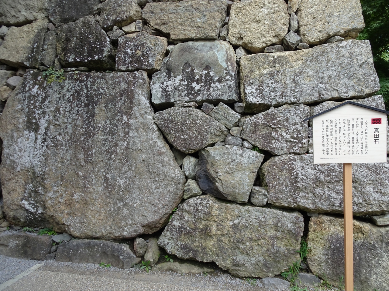 櫓門前にある大きな石で、真田昌幸が上田城を築城した時に石垣として使われたもので、長男の信之が松代に持っていこうとした時にびくともしなかった伝説を持ちます。観光客で賑わっていて、石の前でみな記念撮影をしていました。