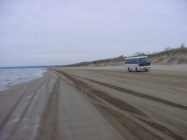 能登半島南部の千里浜海岸は、砂がしまっていることから、車の通行が認められています。なぎさドライブウェイはけっこうスピードを出してもハンドルを取られることはありません。雄大な日本海の景色。できれば日没の時間がいいでしょう。