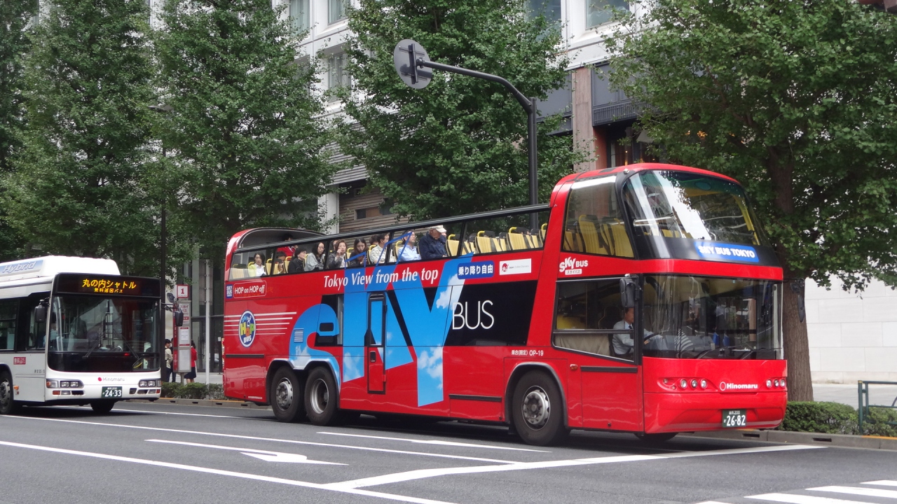 外国の都市を初めて訪れた時は、乗り降り自由の2階建てオープントップバスをよく利用しますが、東京にも同じ赤い2階建の観光バスがあります。それが「スカイバス」です。「皇居・銀座・丸の内コース」に乗車してみました。東京駅丸の内南口の三菱ビルの中にあるチケットカウンターでチケットを購入。1600円です。皇居、国立近代美術館、国立劇場、最高裁判所、国会議事堂、霞が関、銀座と周遊します。約1時間です。スカイバスは「皇居・銀座・丸の内コース」以外にも「東京タワー・レインボーブリッジコース」や「東京スカイツリーコース」もあるので、東京の概略を知るには便利です。外国語のガイダンスもあるので、外国人も多く乗っています。