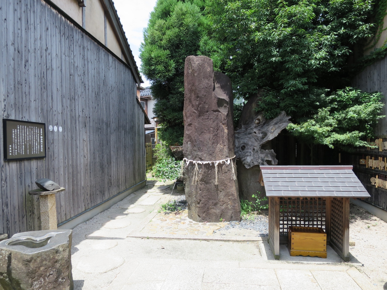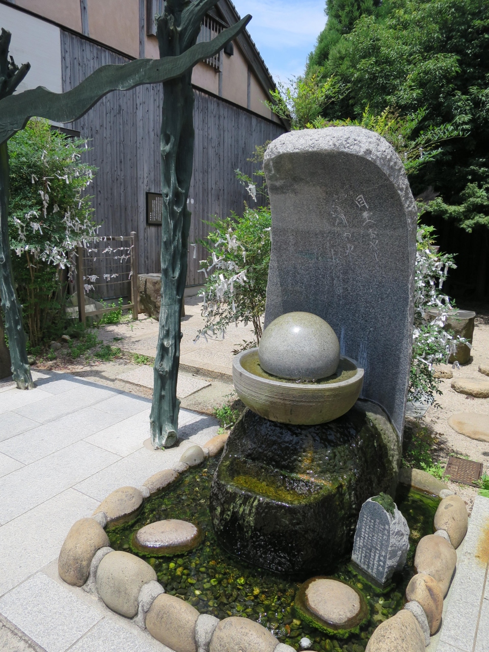 境港駅から水木しげるロードを5分程歩いて行くと左手に小さな鳥居があります。そこが妖怪神社です。鳥居を潜ると大きな黒御影石と欅があり、それが御神体となっています。が、古い神社ではなく2000年に造られた新しい神社で、観光客寄せに作ったのかな?と思ってしまいました。