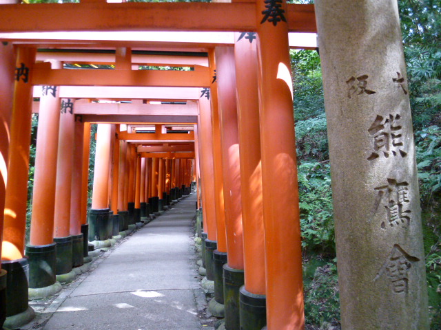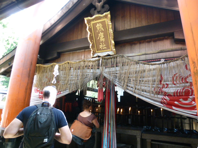 今日は京都・伏見稲荷大社に来ています。三年連続で海外からの観光客No1の幟が立っていますよ。すごいねぇー、本当に多いからね。そして稲荷山の頂上まで登るべくここ「熊鷹社」まできました。ここは千本鳥居の入口からおもかる石を越え、さらに登った三つ辻付近にあります。まだまだ千本鳥居は続き参拝者も多いですね。ここには珍しい新池があります。あまり綺麗な池ではありませんが、池の向こうに見る熊鷹社も良いものです。竹屋と言う店があります。名物のいなりやうどんがあり休憩でもいかがでしょうか。
