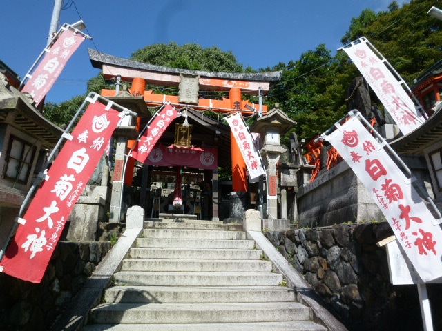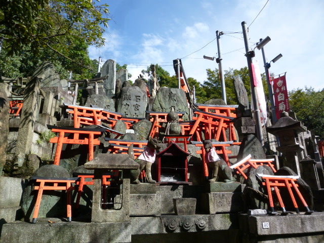 今日は京都・伏見稲荷大社に来ています。三年連続で海外からの観光客No1の幟が立っていますよ。すごいねぇー、本当に多いからね。稲荷山の頂上を目指すべくここ「三ノ峯」まで来ました。ここは白菊大神祀っていてここにも多くの大小の鳥居があります。お店がありますがここまで来ると飲み物が2倍くらいしますね、コンビニでの事前購入をして登った方が良いですね。あと、二ノ峰、そして一ノ峰が頂上となります。頑張りまーす。
